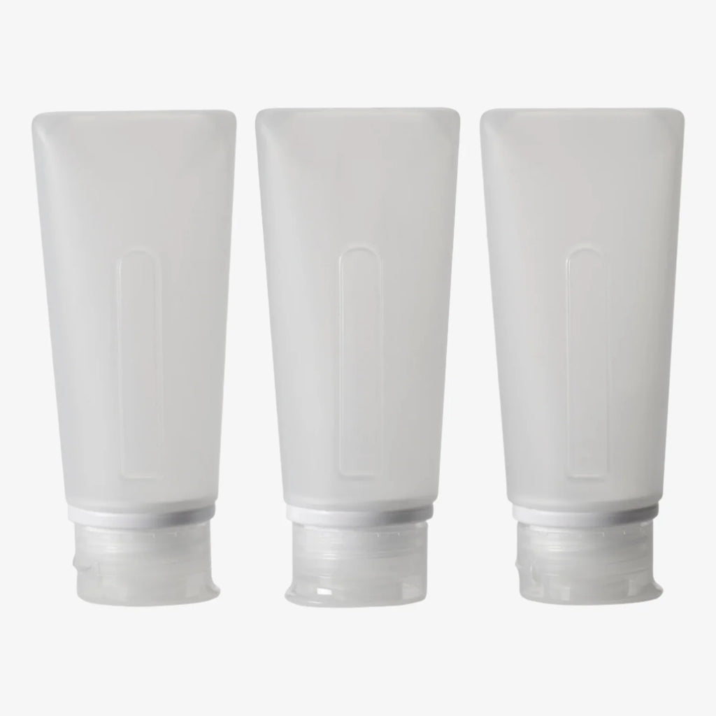 - Set of three travel bottles with flip-top caps