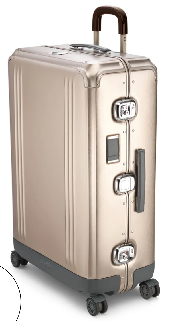 - Brushed aluminum ZH Concave Edging™ for extra strength Low-profile, coated leather top and side carry handles with luxe hand-stitched detailing ZH Chassis™ with scalloped grip handle near wheels for easy lifting from trunk or overhead